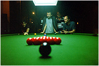 Serg Marcottee (Canada) sets up to break. Thomas Stiener (Austrian) Mark Siska (US) and Michael Wallin (US) |